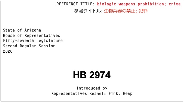 アリゾナ州選出のレイチェル・ジョーンズ・ケシェル下院議員(第17選挙区)は、「 mRNA生物兵器禁止法案」と題する HB 2974 をアリゾナ州議会に提出した。