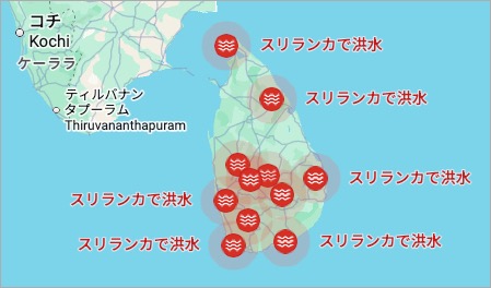 この洪水被害の特徴は、「影響を受けている範囲が非常に広い」ことかもしれません。スリランカは東南アジアとは別の嵐による被害ですが、犠牲者が出ている国は以下のような広範囲に及びます。