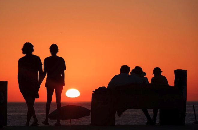 記録的な猛暑に見舞われたカリフォルニア州ラグナビーチの夕日。