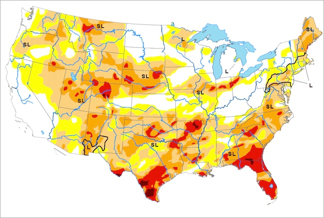 アメリカ全土のほとんどが干ばつ状態に