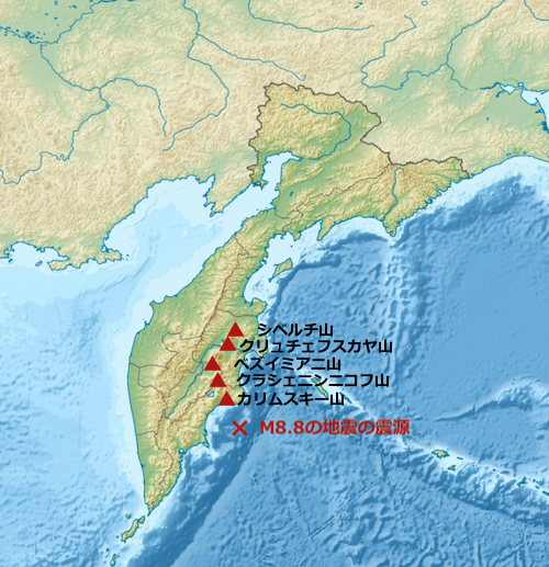 7月30日に、カムチャッカ半島近海で、マグニチュード 8.8という史上第 6位の規模となる大地震が発生しましたが、それと共に、比較的隣接するクリュチェフスカヤ山という火山が大噴火しました。