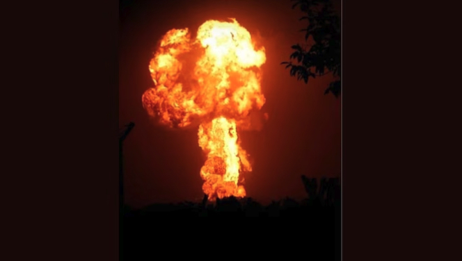 ビデオに記録されているように、この出来事は、かすんだ地平線を照らす巨大な火の玉から始まり、その後に煙が渦巻き、炎が燃え続けた。
