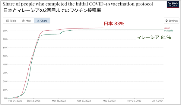 たとえば、今回ご紹介する記事にあるマレーシアは、2回目までのコロナワクチン接種率だけでいえば、日本と同等の高レベルです。