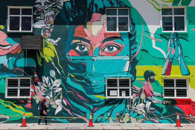 クアラルンプールの政府診療所で、医療従事者を描いた壁画。scmp.com