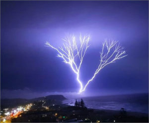 オーストラリアの悪天候の中で出現し続けた「上に広がる落雷」