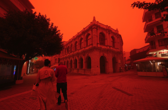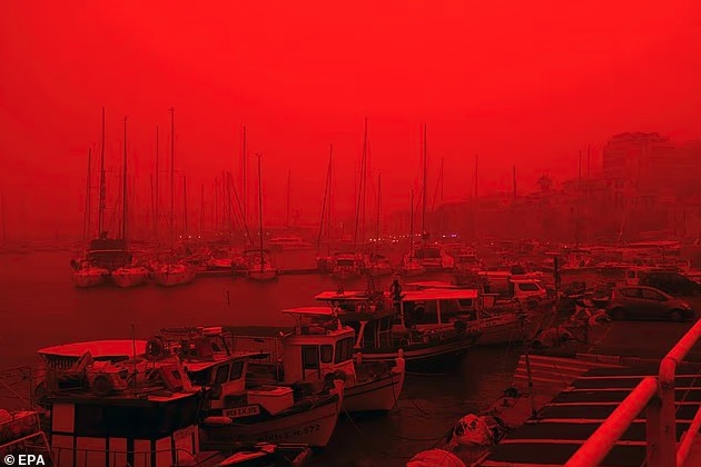 その数日後、悪天候と砂嵐により大気が真っ赤になるという、ほぼ同じ現象が、北アフリカからギリシャにまで及んでいます。