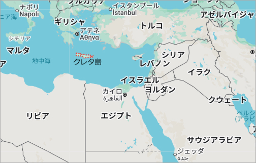 砂嵐の影響を受けた地域(リビア、クレタ島)の地図