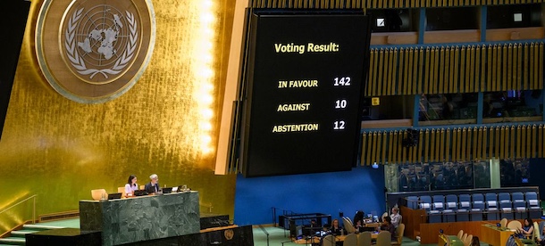 イスラエルは、アルゼンチン、ハンガリー、ミクロネシア、ナウル、パラオ、パプアニューギニア、パラグアイ、トンガ、米国の他の9カ国とともに反対票を投じ、12カ国が棄権した。