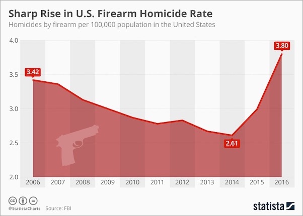 米国の銃火器による殺人率の推移(2006年〜2016年)