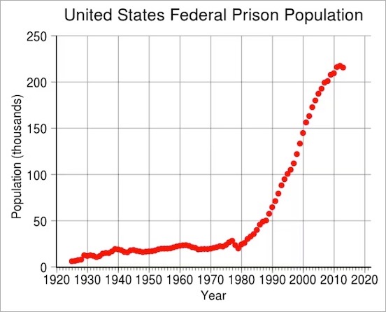 アメリカ合衆国連邦刑務所の収容者数(1924年〜2013年)