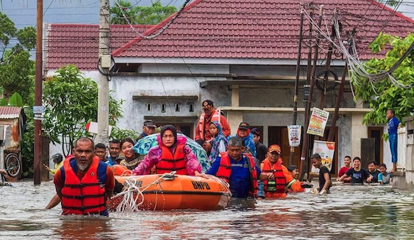 インドネシア災害対策当局は、悪天候により救助活動が妨げられ、数万人が避難した一方で、数百人が依然として取り残されていると発表した。